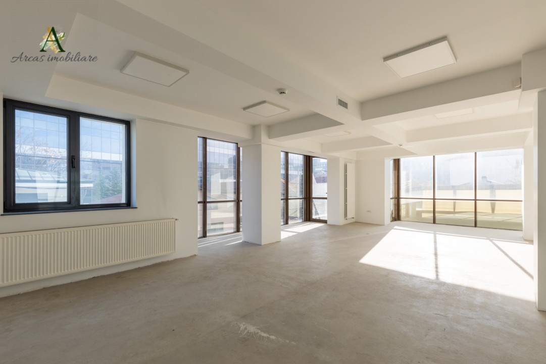 Etaj 3: Suprafața deschisă de 213 mp, cu două grupuri sanitare și un balcon.