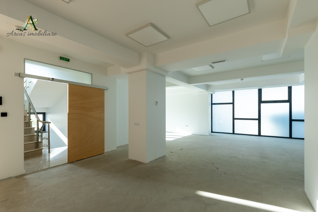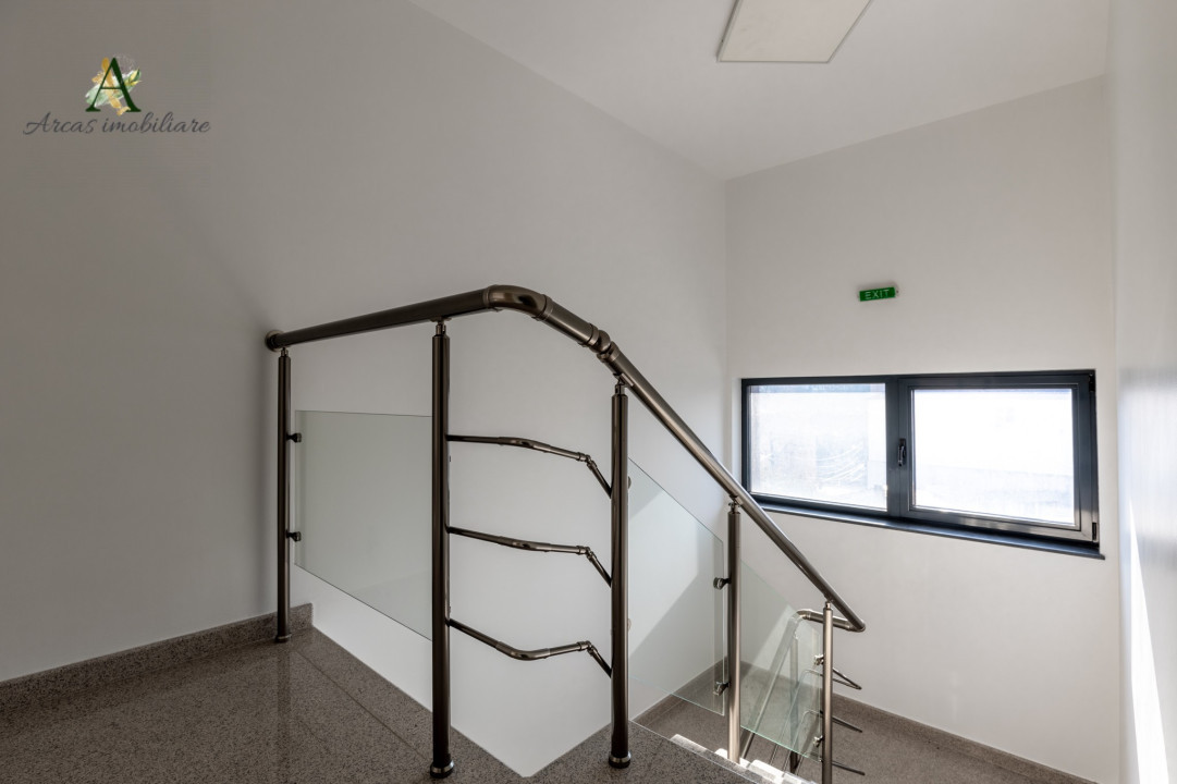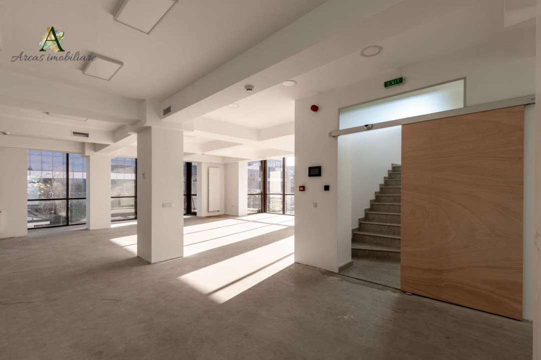 Etaj 1: Suprafața deschisă de 216 mp, cu două grupuri sanitare, cameră tehnică și un balcon cu suprafata utila 216mp